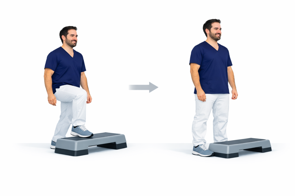 Diese Übung stärkt vor allem die Oberschenkelmuskulatur und trainiert eine alltagsnahe Bewegung.